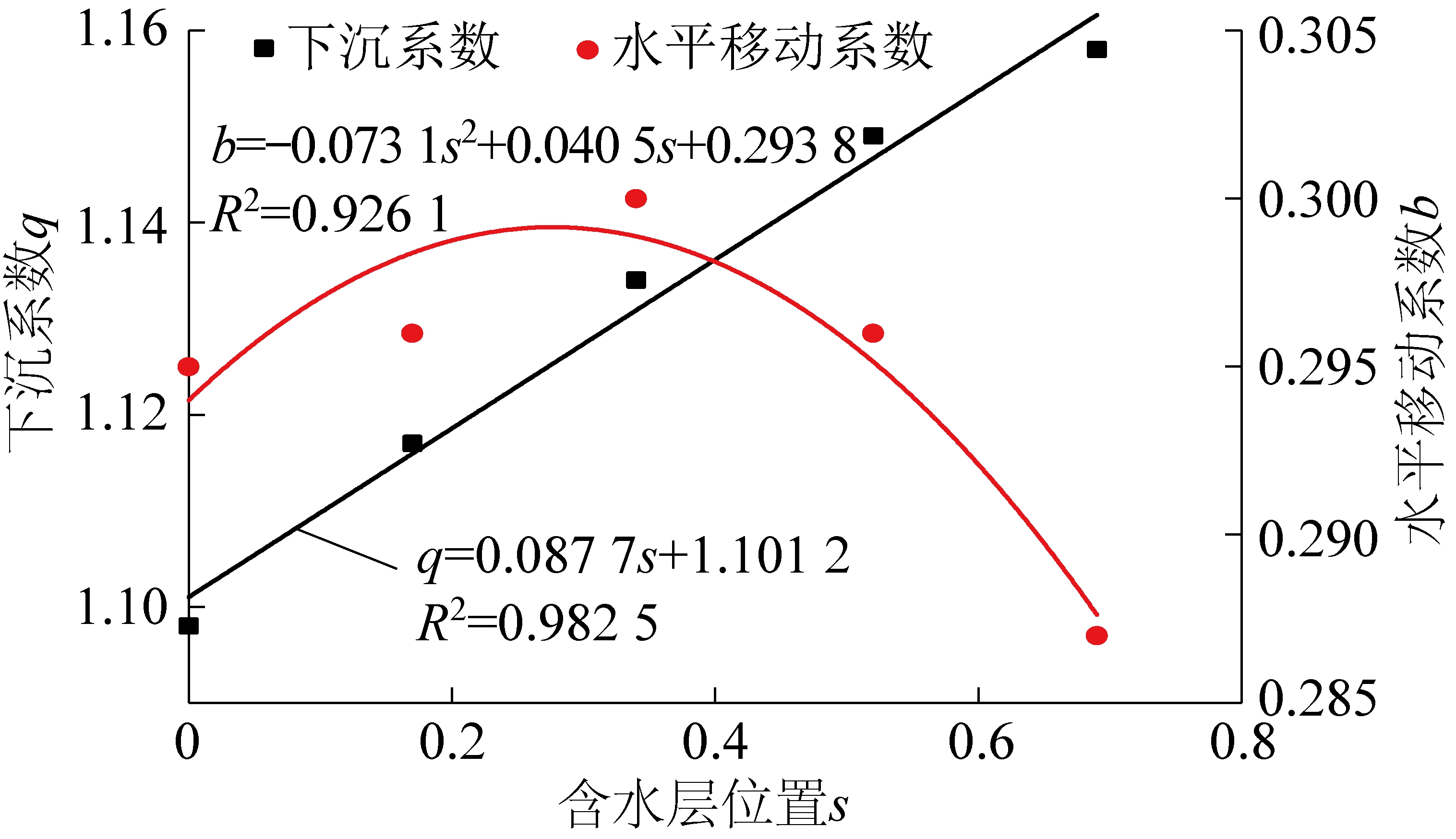 根据模拟结果,绘制了水平移动系数b与含水层位置s之间的关系图,如图7所示。