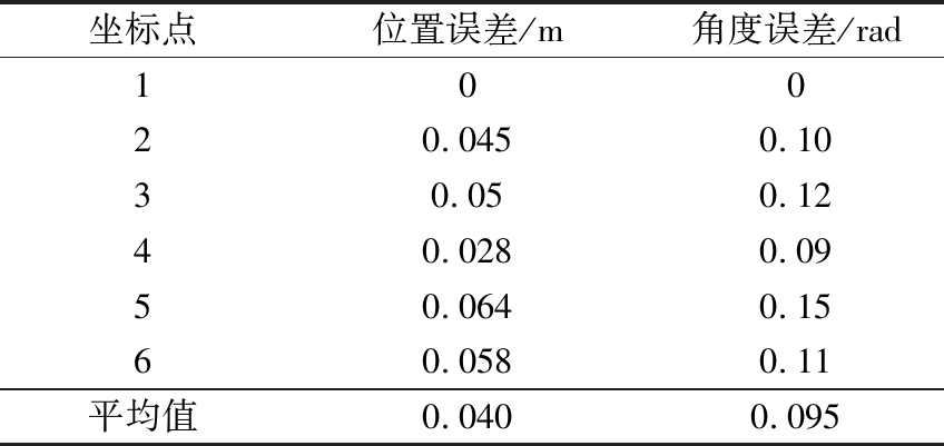 在实际导航中,巡检机器人始终沿着规划的路径行走,根据表1和表2的测量数据通过式(12)和式(13)计算得到巡检机器人在导航过程中各坐标点的位置误差和角度误差,见表3。