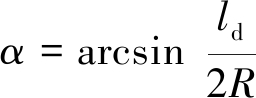 式中:α为机器人从当前位置运动到目标点需要转过的角度;ld为机器人位置参考点C距目标点的距离;R为机器人运动轨迹的圆弧半径。