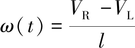 机器人有2个主动轮,轮子直径为d,两轮轮间距为l,机器人左右两轮的运动速度分别为VL和VR,其中VL和VR可通过安装在电机上的光电编码器测量获得。巡检机器人在机器人坐标系下位置参考点C运动的线速度为v(t),角速度为ω(t)为: