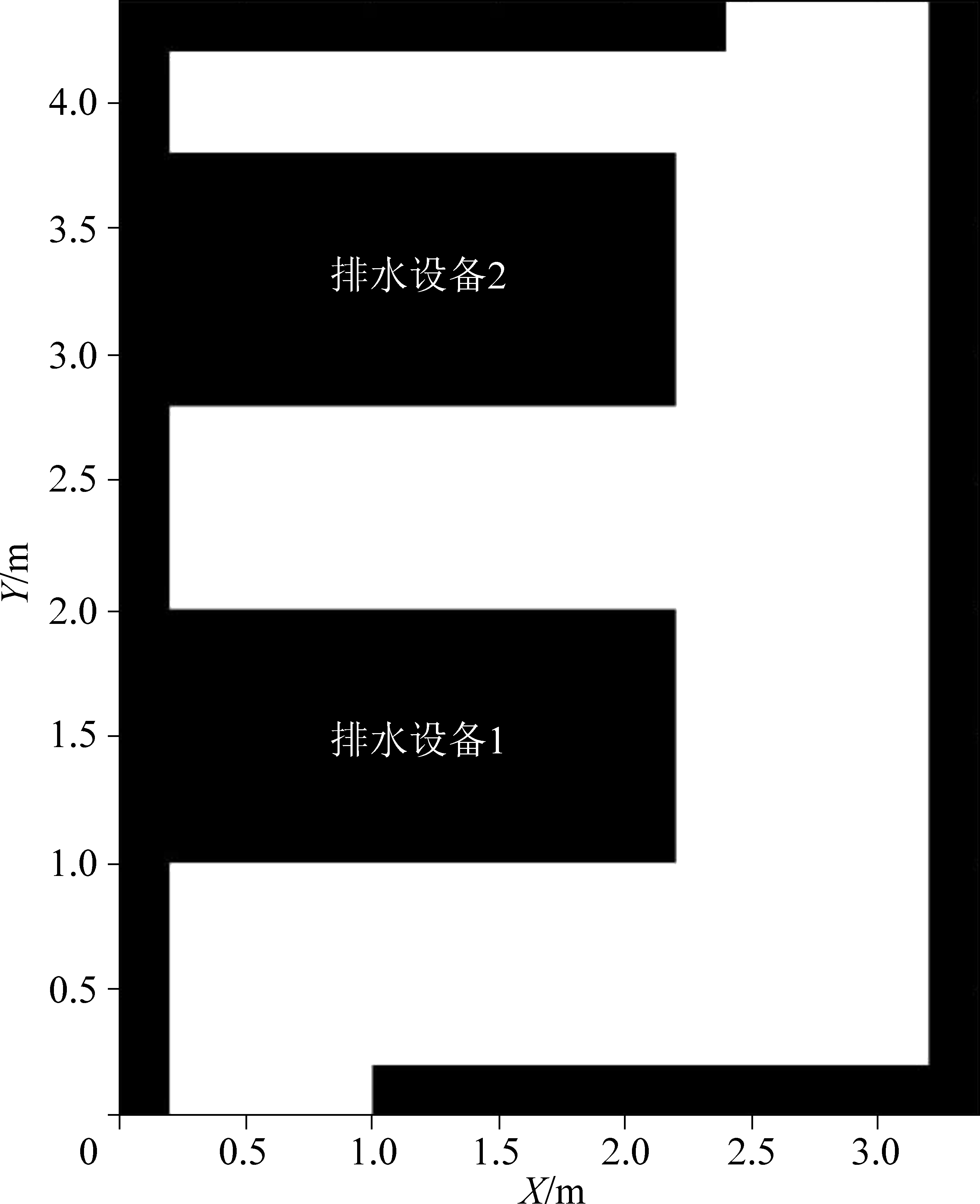 由于水泵房内各个设备的位置已知,且设备的位置是不经常发生改变的,因此人工测量与MATLAB中栅格地图生成算法结合建立水泵房的二维栅格地图的方法是可行的。