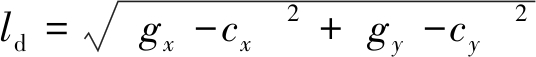 图7中G(gx,gy)是下一个要跟踪的目标点,它位于已经规划好的全局路径上,现在需要控制巡检机器人的位置参考点C经过该目标点,参考点C的当前位置为(cx,cy),ld表示巡检机器人当前位置到目标点的距离,α表示目前车身和目标路点的夹角。根据两点之间的距离公式可得到:
