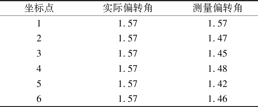 Table 2 Actual deflection angle of each coordinate point and measured deflection angle rad