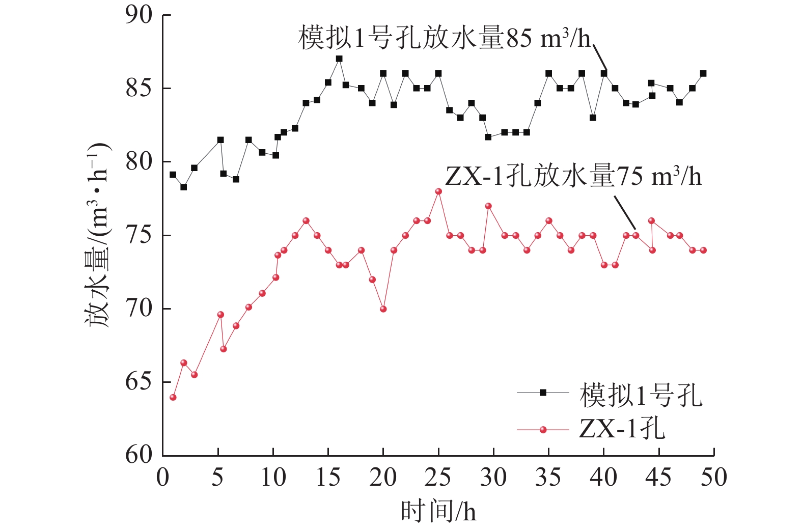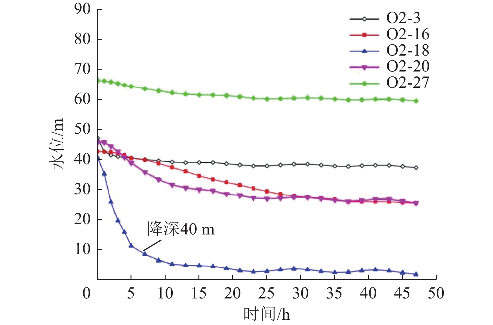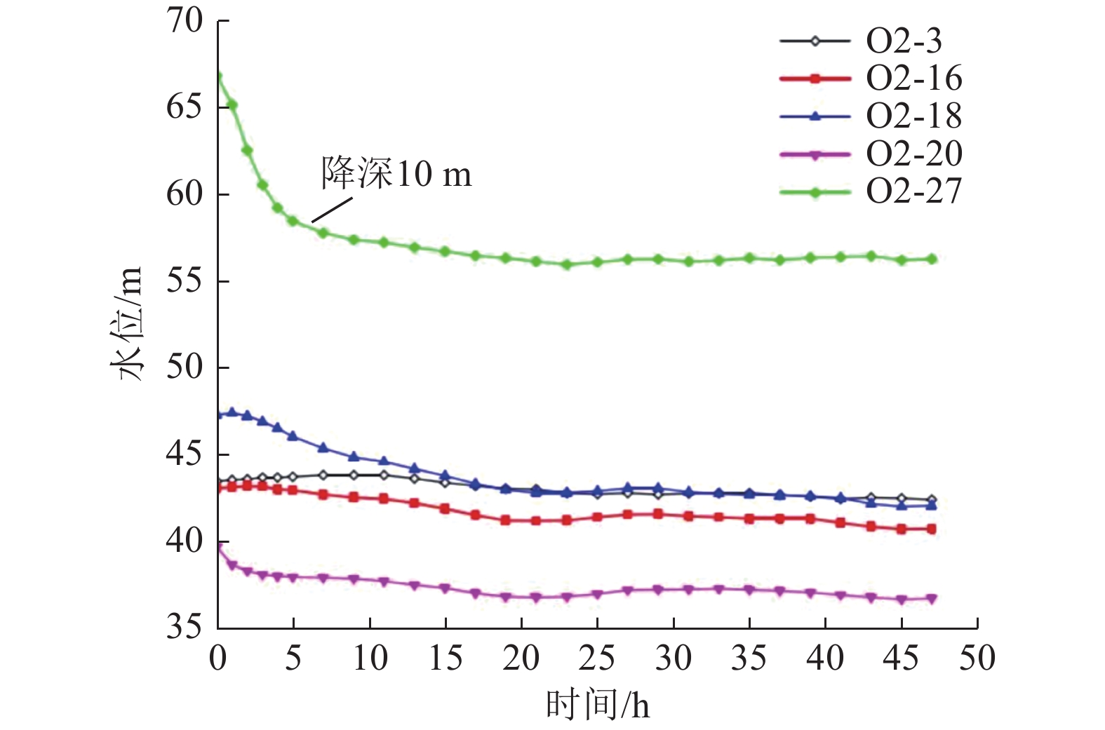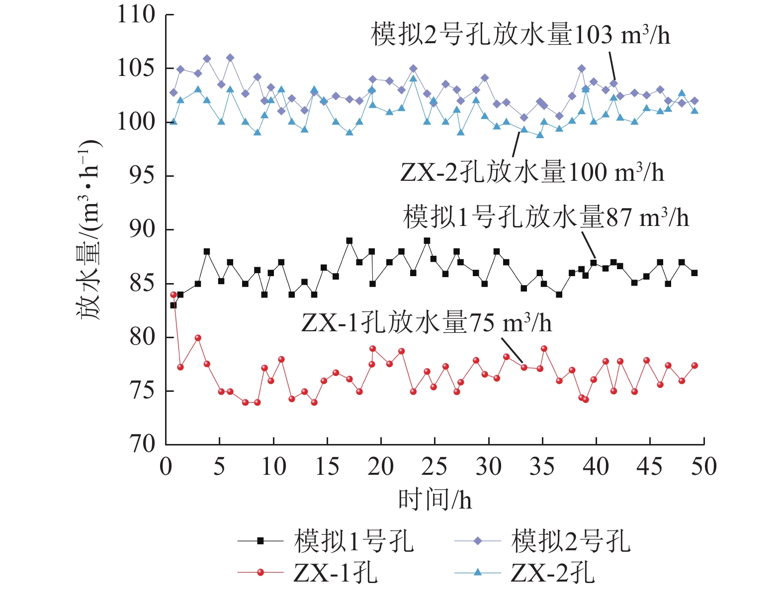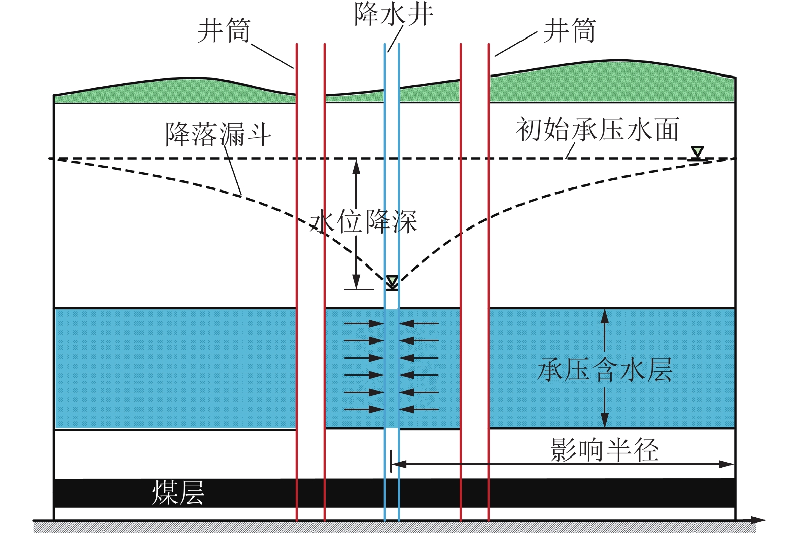 3/h. The test has significantly lowered the groundwater level, and formed the landing funnel with a maximum depth of 40 m. The actual measurement in the field is more in agreement with the results of the simulation experiment, which verifies the similarity with the results of the simulation experiment. Simulation test results are more consistent, verifying the scientific and practical effect of the hydrophobic bucking management method. The results of this research can help to promote the progress of wellbore water seepage control technology under the influence of deep roof pressurized aquifer.