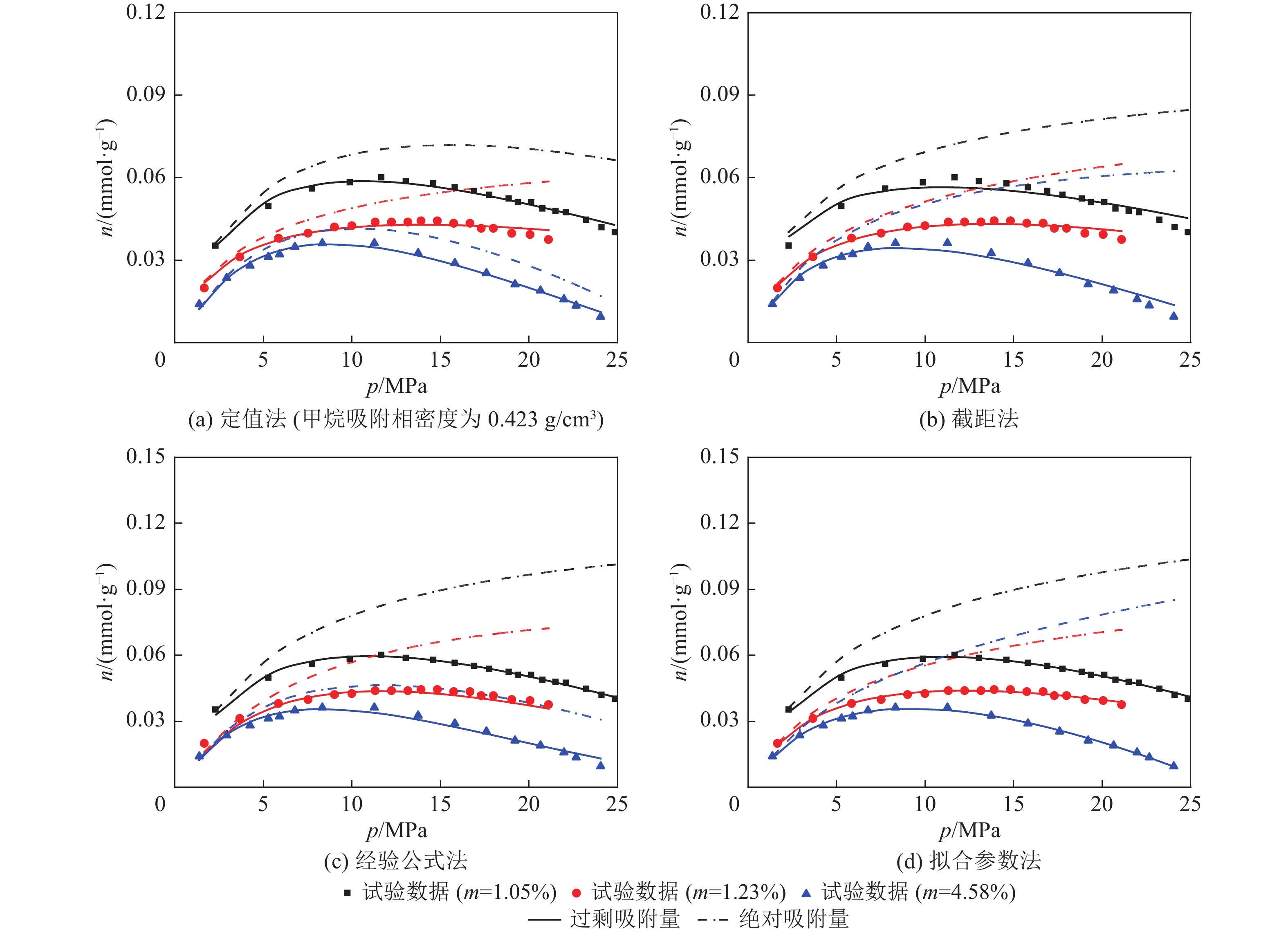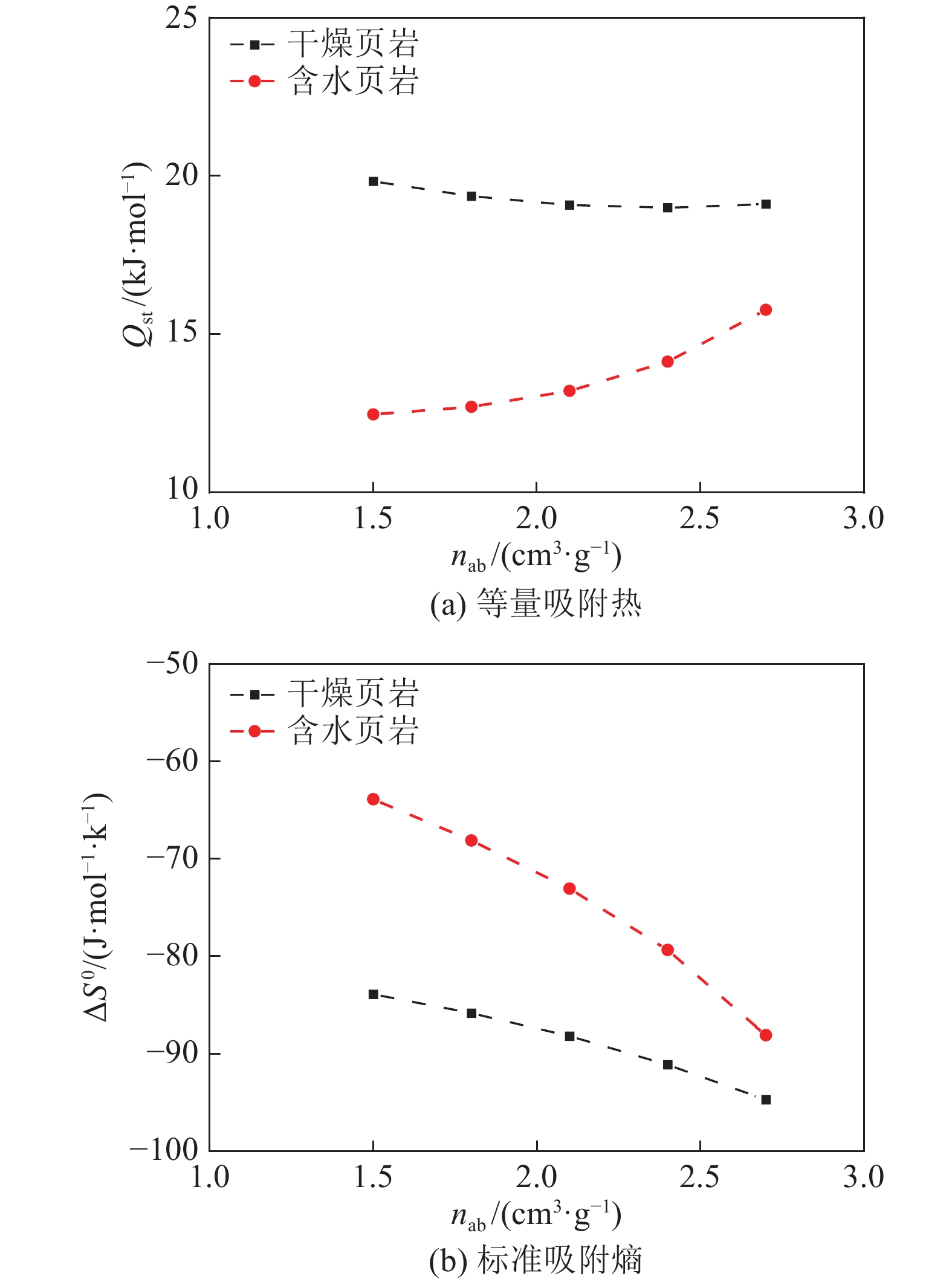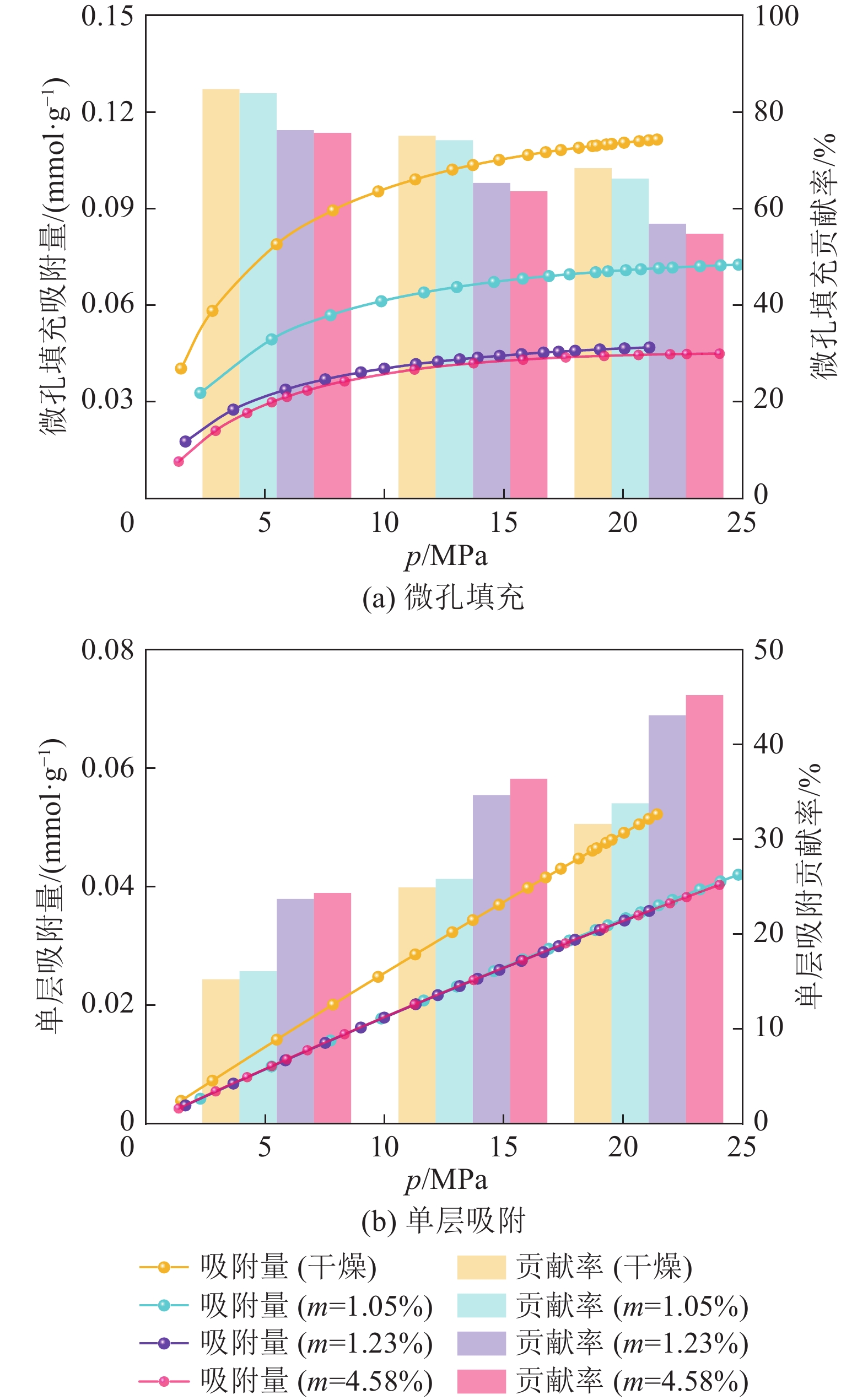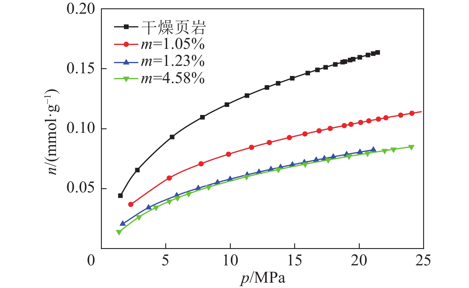 Shale reservoirs generally contain water that has a significant impact on shale gas adsorption behavior and geological reserve evaluation. In order to explore the influence of water content on gas adsorption behavior in shale, an adsorption model considering the influence of water content was established, the rationality of the new model was verified by combining several sets of experimental data, and gas adsorption behavior in water-bearing shale was further analyzed. On this basis, the contribution of different adsorption mechanisms to the isothermal adsorption of methane in shale was discussed, and the thermodynamic characteristics of adsorption in dry and wet shale were compared by thermodynamic parameters. The results shown that, the methane adsorption amount shown a typical “three-stage” change in the process of gas pressure change. Among them, water has an inhibitory effect on methane adsorption capacity, gas adsorption capacity in water-bearing shale was significantly lower than that in dry shale, and gas adsorption capacity decreased with the increasing water content. In addition, temperature also inhibited methane adsorption, and gas adsorption capacity in shale decreased with the increasing temperature when the water content was constant. At the same time, the contribution of different adsorption mechanisms to adsorption capacity was affected by the combination of water and pressure. The higher the pressure and water content, the lower the contribution of microporous filled adsorption to the total adsorption capacity. Thermodynamic parameters indicated that methane adsorption in both dry and water-bearing shale was physical adsorption, and the isosteric adsorption heat in dry shale was always higher than that in water-bearing shale under the same adsorption capacity. Water occupied high-energy adsorption sites and affected intermolecular forces by altering shale heterogeneity, which combined to reduce isosteric adsorption heat and hence gas adsorption capacity in water-bearing shale. The research results contributed to the accurate calculation of gas adsorption capacity in shale, and provided a theoretical basis for the development programme and compilation of shale gas reservoirs.