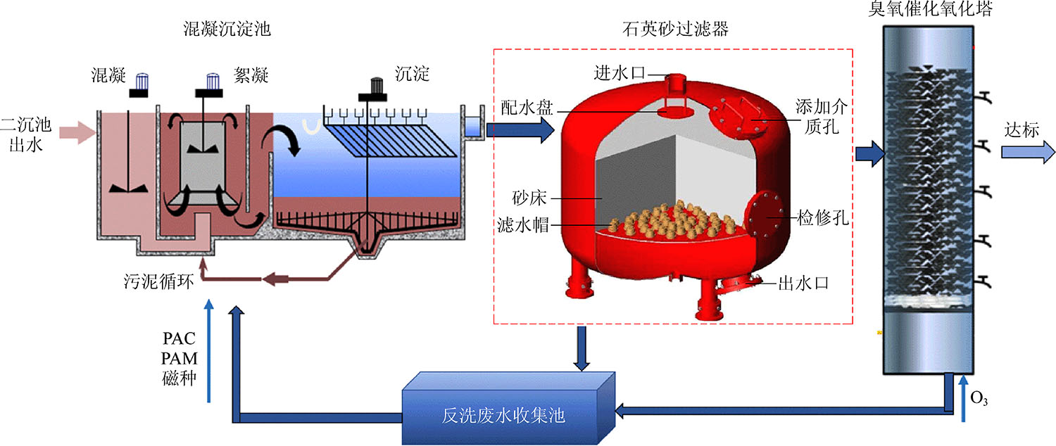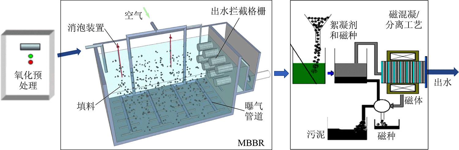 Coking wastewater is a kind of typical high concentration refractory organic wastewater, which has the characteristics of complex pollutant composition, high pollutant concentration, poor biodegradability, high toxicity, high chroma and great fluctuation of water quality. Due to the high concentration of COD in coking wastewater and the large amount of refractory organic pollutants such as phenol, ester, cyanogen, indole, pyridine and long-chain alkane, the traditional combined process of “pretreatment+biochemical treatment” can not meet the new coking wastewater discharge standard GB 16171—2012 Emission Standard of Pollutants for Coking Chemical Industry. Therefore, it is urgent to find a stable, economic and resource-based advanced treatment process to meet the emission standards. Based on this, the authors summarize the research results of water quality characteristics, discharge standards and unit treatment technology of coking wastewater at home and abroad in recent years, summarize the current advanced treatment technology of coking wastewater, such as MBBR, BAF, coagulation, advanced oxidation technology and membrane separation technology, and point out the single biochemical technology or the physicochemical treatment technology is difficult to meet the discharge or wastewater reuse requirements.Three new combined processes of high-efficiency and economic coking wastewater advanced treatment, namely “oxidation pretreatment + MBBR + (magnetic) coagulation”,“magnetic/coagulation/filtration+ozone catalytic oxidation” and “magnetic/coagulation+advanced oxidation+double membrane treatment”, are proposed and successfully applied in practical projects. According to the water quality conditions of coking wastewater, it is the development trend of coking wastewater advanced treatment technology in the future to select or develop the combined process with advantages of good treatment effect, advanced technology and simple operation according to local conditions.