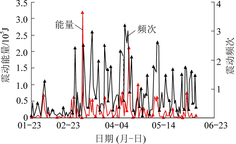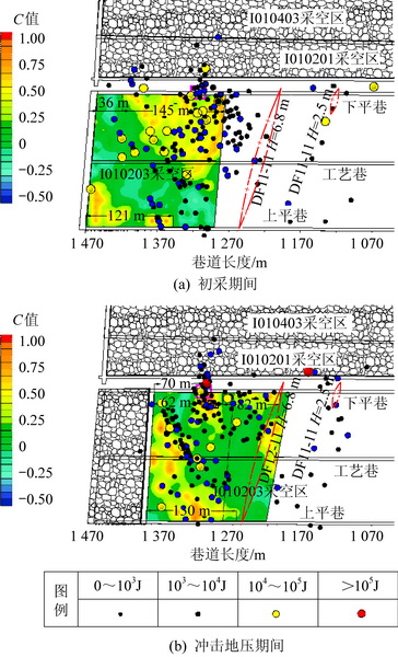 In order to study the causes and laws of the multiple mine earthquake induced shocks in the gob area of I010203, the ARAMIS M/E microseismic monitoring system, PASAT-M portable seismic monitoring system and impact ground pressure stress monitoring system are used for real-time monitoring, through the analysis of geological and mining factors, the six influencing factors were determined. According to the coal stress monitoring data, the monitoring data of the support pressure and the microseismic monitoring data, the concentration and evolution process of the coal body stress during the mining process of I010203 working face were analyzed and the working surface cycle was studied. The evolution process of microseismic activity during the period of working face cycle, fault zone and lateral roof was studied, and the weak shock caused by a mine shock occurred during the mining period was also analyzed. In the case study, the PASAT-M portable microseismic monitoring system was used to detect the weak impact area. According to the results of comprehensive monitoring and analysis, the relationship between coal body stress and surrounding rock activities and the disaster-causing process were discussed. The causes and laws of mine-induced earthquake induced impact of I010203 working face were determined. The results show that I010203 working area faces high stress concentration in the gob, the physical side reaches 2.05~8.59, and the coal pillar side reaches 1.76~3.16. The high static load formed by the superposition of mining and tectonic stress is close to or reaches the impact pressure of coal body. Critical stress, fault, lateral roof structure and roof cycle breaking are the main factors affecting the occurrence of mining earthquakes. The static load with high concentration provides easy-to-satisfy stress conditions for impact disasters, working face pressure, fault, lateral roof structure. The sudden release of energy of structure induces occurrence of large-energy mine earthquakes, and the dynamic load form is transferred to stope space, so that the coal body near the critical or critical stress condition is further raised to the critical condition where the rock burst pressure occurs, thereby inducing the impact.