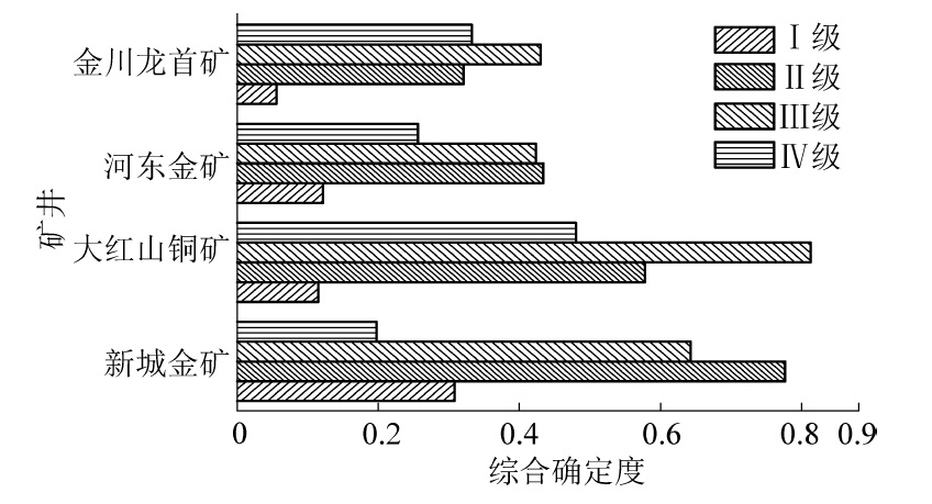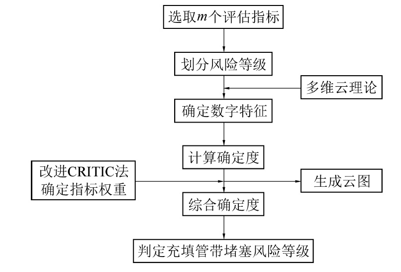 Pipeline blockage is one of the main failure accidents of filling pipeline which seriously hinders the normal operation of filling. To accurately predict the risk of blockage,which based on the uncertainty and fuzziness of filling pipeline blockage,a multi-dimensional cloud model was established. Eleven elements,including the stowing gradient,were selected as the variables of the cloud model. The certain degree of each indicator of different risk levels was calculated according to the cloud theory. Taking the multi-index interaction of pipeline blockage into consideration,we introduce the improved CRITIC method to process the index data,and obtained the comprehensive determinacy by combining the multi-dimensional cloud model,so as to determine the risk level of filling pipeline blockage. The paper studied the case of four domestic mining enterprises,the results showed that the wear risk grades of Pipeline blockage in Longshou Mine,Hedong Gold Mine,Dahongshan Copper Mine and Xincheng Gold Mine were Ⅱ,Ⅲ,Ⅱ and Ⅲ respectively. Compared with fuzzy mathematics,unascertained measure theory,one-dimensional cloud model and SPA-AHP,the pipeline blockage risk grades of Dahongshan Copper Mine obtained by this method and other methods are Ⅱ,Ⅳ,Ⅲ,Ⅲ and Ⅱ respectively,the calculation model is more rigorous to the assessment results and can ensure safety in practice on the premise of satisfying the accuracy of assessment results. It also provides a new method for the risk prediction of filling pipeline blockage.