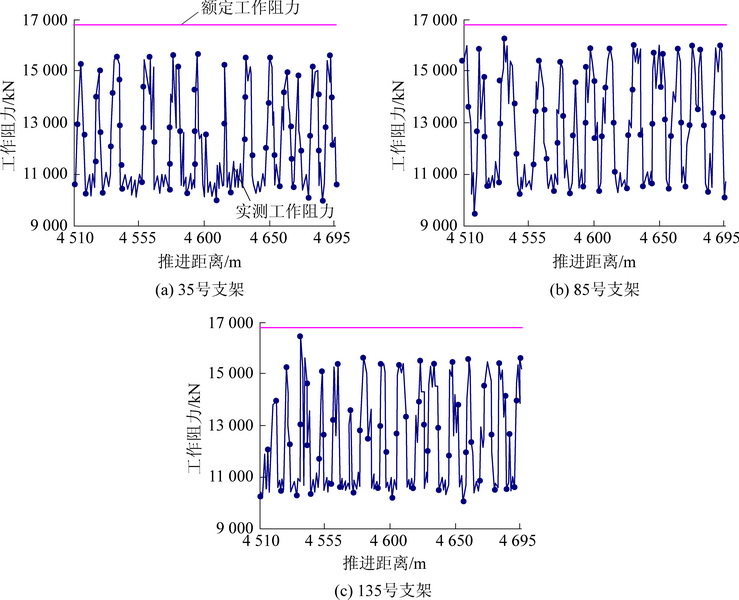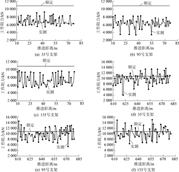 In order to determine law of large mining height and adaptability of support in Shendong Mining Area, the field measurement was carried out by the working resistance of support and macroscopic mine pressure. Based on three main functions of support, protection and mining, the fuzzy mathematics method was used to quantitatively evaluate the support adaptability. The results show that there are two different types of mining pressure in the large mining height of Shendong mining area. The pressure step distance of Bulianta coal mine and Yujialiang Coal Mine is 14.3 m and 11.4 m respectively, and the rib spalling distance is generally less than 100 mm. The support overrun ratio is about 1%, the quantitative calculation of the adaptability of the support is good; the periodical pressure of the Bultai coal mine is high (the overrun ratio is 51.6%), the frequency of the pressure is high (the periodical roof weighting distance is 7.8 m), and the range of the rib spalling and the roof caving is greater than 1 000 mm, the quantitative evaluation of the adaptability of the support is extremely poor, and so the large mining height coal mining method must be replaced with the top coal mining. Quantitative evaluation of the adaptability of the support is extremely poor, and the mine pressure must be changed as abnormal mine pressure. Broken roof, mining layout, “isolated island” coal pillars and complex geological structures in the gob are the main causes of abnormal mine pressure.