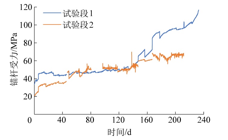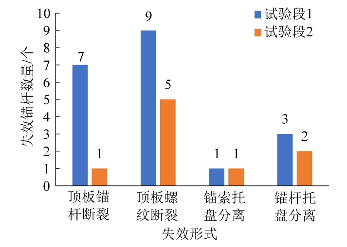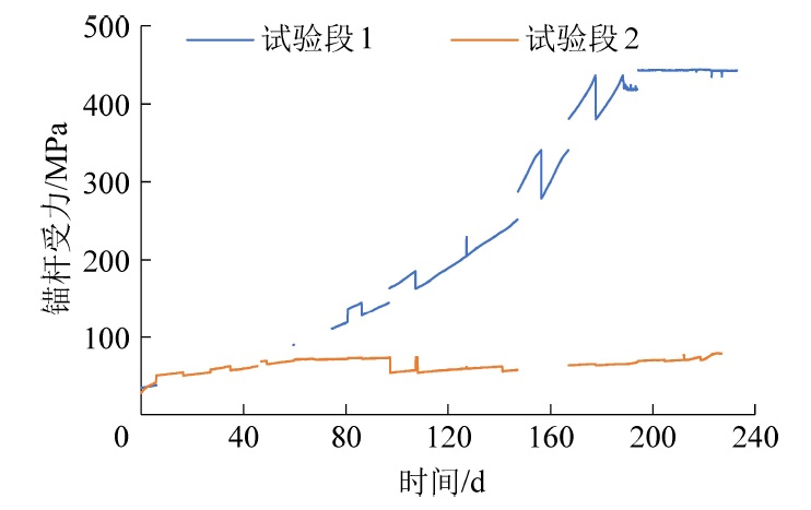 Aiming at the problem of bolt support failure caused by surrounding rock deformation in deep mining roadway,a method was proposed to reduce the bolt breakage by improving the bolt stress state, changing the anchoring mode and optimizing the shape of rod body. On this basis, a new rebar anchor rod with a new shape and structurewas designed. Laboratory tests show thatthe average pull-out force of the right-hand bolt, the left-hand bolt and the high strength bolt with large rib spacings are 136.9 kN, 106.1 kN and 147.6 kN, andthe large-rib spacing high-strength bolts absorb energy better result. Before the field test, the surrounding rock structure of the return air roadway was detected, including roof drilling and loose circle testing. The final roadway support scheme was determined according to the detection results of surrounding rock structure. The original supporting scheme and full bolt supporting scheme were adopted for the return roadway, and the roof separation and bolt stress were monitored in real time. The test results show that the maximum roof subsidence of roadway supported by high-strength bolt with large rib spacing is reduced by 36.4% compared with the original support scheme, and the roof separation amount is reduced by 24.1% compared with the original support scheme. The results of the stress on the roof and two side bolts show that the stress of high-strength bolt with large rib spacing is smaller than that of the original support scheme, and the maximum stress of roof bolt is 442.9 MPa and 78.1 MPa respectively, and the improved scheme is reduced by 82.4% compared with the original support scheme. At the same time, compared with the original support scheme, the failure of bolt support is significantly reduced, which indicates that the full-length anchored high-strength boltwith large rib spacingis more conducive to maintain the stability of roadway.