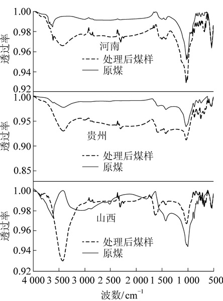 Deep coal mining brings new challenges for prevention and control of spontaneous combustion in coal mines. For example, high geothermal environment caused by the increase of mining depth directly changes the initial conditions of coal oxidation and self-heating, then affects the micro-structure of coal, and increases the risk of fire. In order to study the influence of high geothermal environment on spontaneous combustion characteristics of coal in deep coal mining, eight coal samples with different coal rank were tested and compared. The coal samples were treated in simulated high ground temperature environment for 30 days and their pore structure changes were measured by static capacity method. The variation of main active groups of coal under the influence of ground temperature were analyzed by the Fourier infrared spectroscopy. The CO yield from the test was compared with the CO yield in the programmed temperature experiment at 180 ℃. The results show that the changes of —OH stretching (free hydroxyl group) and C—H structure (aliphatic hydrocarbons) in coal are the largest. The specific surface area of anthracite coal decreases to as low as 46.01% under the long term high geothermal environment. The pore of bituminous coal is mainly larger than 3 nm, with least structure change after treating. The pore size of lignite coal is more developed than that of bituminous coal. After treatment, the specific surface area of lignite and bituminous coal increases by 4.04% and 20.4% respectively, and the average pore size of lignite and bituminous coal decreases by 20.5% and 14.4% respectively. The influence of ground temperature on coal spontaneous combustion with different coal rank is significantly different. High ground temperature in-creases the CO production of anthracite, bituminous and lignite coal by 13.1%, 28.5% and 36.1%, respectively, which indicates that low-rank coal is more susceptible to high ground temperature environment. This research provides a reference for the prevention and control of fire hazards in underground mine gob in high geothermal environment.