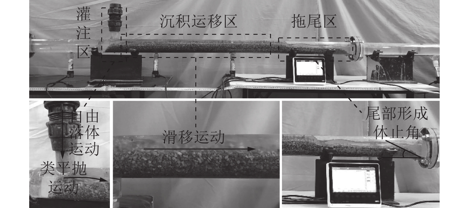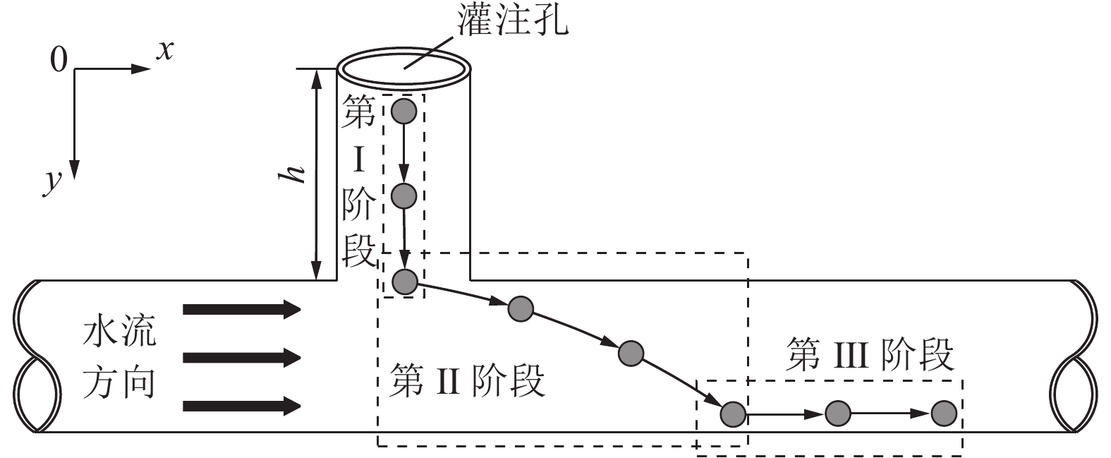 Grouting after pouring aggregate can effectively control water inrush from coal and rock mass. The study on the deposition and migration law of aggregate in the water inrush channel from coal and rock mass is an important prerequisite to determine the aggregate particle size, aggregate grouting volume and the spacing of aggregate grouting holes. However, there are few theoretical and experimental studies in this area at present, and the actual construction mainly depends on experience, which is blind. In view of this, based on the slurry pipeline transportation theory and sediment movement mechanics, combined with Newton’s second law, the whole movement process of aggregate from the pouring hole to the water inrush channel is divided into three movement stages: free fall, similar horizontal throwing and sliding, and their stress analysis is carried out respectively. A sedimentation, migration and diffusion model from single aggregate to aggregate particle group is established, and the sedimentation and migration rules characterizing the aggregate particle group in the horizontal direction are obtained; A model test platform for visualization of aggregate deposition and movement in water inrush channel of coal and rock mass is designed by ourselves. With the help of this platform, aggregate deposition and movement model tests are carried out under the influence of various factors such as different hydrodynamic velocity, aggregate particle size, pouring height, et al, to analyze the deposition and movement rules of aggregates in water inrush channel, and to obtain the total length of aggregate deposition and movement area under different test schemes. The experimental results show that the actual migration process of aggregate is consistent with the assumption of three movement stages in theory, and the average error between the experimental value and the theoretical calculation value of the sediment migration distance of aggregate is 7.34%; On the premise that the injection height is controlled to be consistent with the dynamic water conditions, the theoretical formula is more applicable to coarse aggregate (particle size > 5 mm) than to fine aggregate (particle size ≤ 5 mm); When solving the problem of water inrush from coal and rock mass in engineering, if the aggregate particle size is greater than 5 mm, the migration distance of aggregate particle group in the horizontal direction can be calculated by using the theoretical formula in this paper, so as to determine the spacing of aggregate grouting holes and reduce the blindness in the actual construction process.
