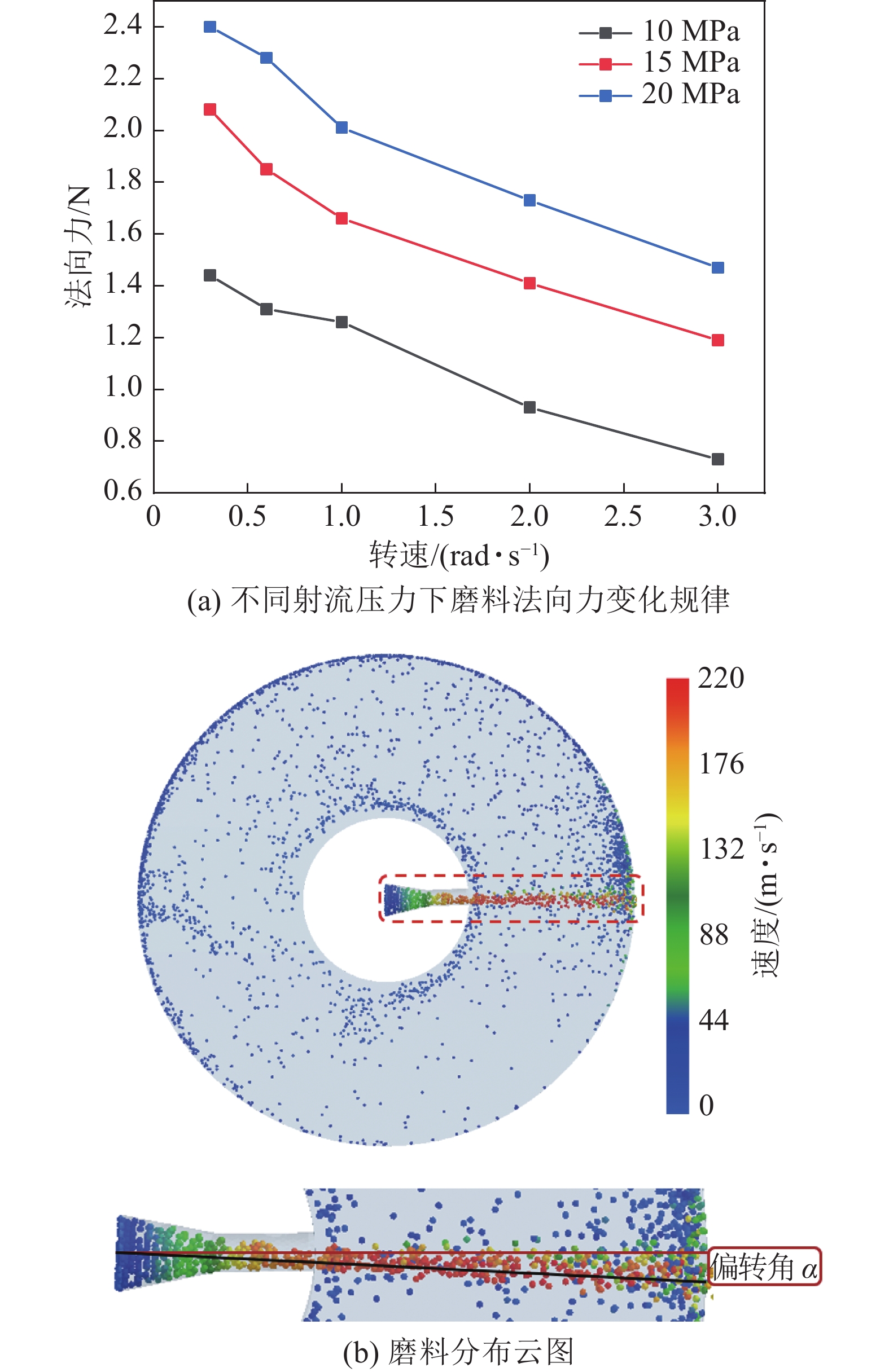 As coal mining extends deeper, pure water jet technology is gradually unable to meet the demand for coal penetration enhancement under high stress and high coal rock strength conditions. Abrasive water jet can effectively improve the rock breaking ability of water jet, and the abrasive water jet rotary cutting pressure relief technology can achieve efficient anti permeability of high stress and hard coal seams. Jet pressure and rotation speed are important factors affecting the effectiveness of abrasive water jet rotary cutting of coal and rock. Clarifying the mechanical characteristics and laws of abrasive water jet rotary cutting of hard coal is a prerequisite for reasonably matching jet pressure and rotation speed. This article adopts a combination of numerical simulation and experimental research to analyze the influence of different jet pressure and rotation speed matching relationships on the mechanical mechanism of jet impact on the target body, and clarify the influence rules of different jet pressure and rotation speed on the cutting effect of abrasive water jet rotation. The research results indicate that the normal force generated by the high-speed impact of abrasive particles on coal and rock mainly depends on the jet pressure, while the tangential force depends on both the jet pressure and the rotational speed. The normal force and tangential force have different effects on the impact of abrasive particles on coal breaking, and together determine the effect of abrasive water jet rotation cutting coal and rock. When the jet pressure is less than 25 MPa, the cutting depth increases with the increase of jet pressure, and the rate of increase in cutting depth significantly decreases after exceeding 25 MPa. Under the condition of constant cutting time, the cutting depth of abrasive jet rotation always shows an upward trend with the increase of rotation speed. Propose to use the optimal matching coefficient