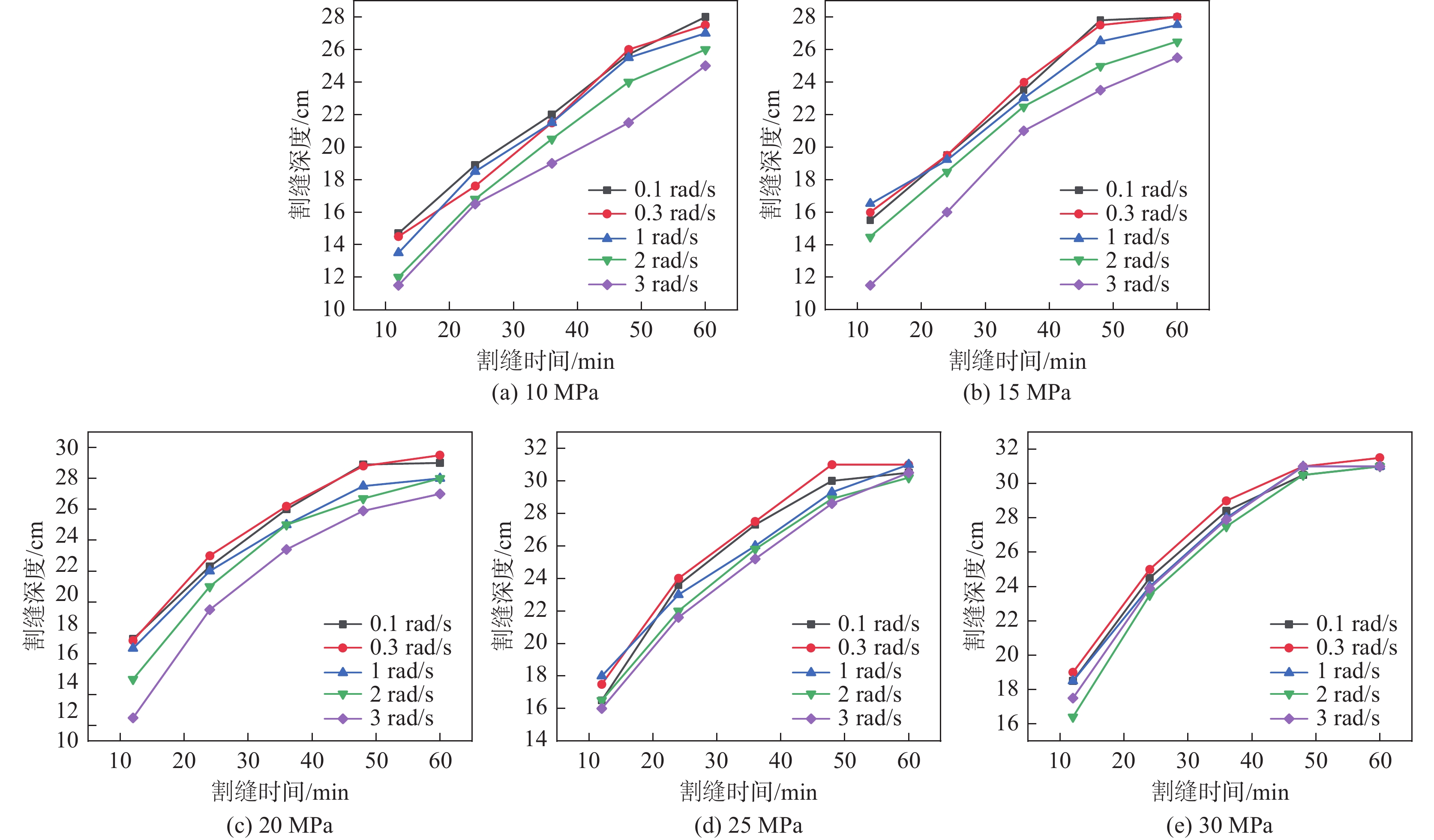 0.000299. A calculation model for the optimal matching parameters of abrasive water jet rotating slotting jet pressure and rotation speed has been established. The optimal matching speed can be directly calculated based on the jet pressure, resulting in the best jet cutting effect.