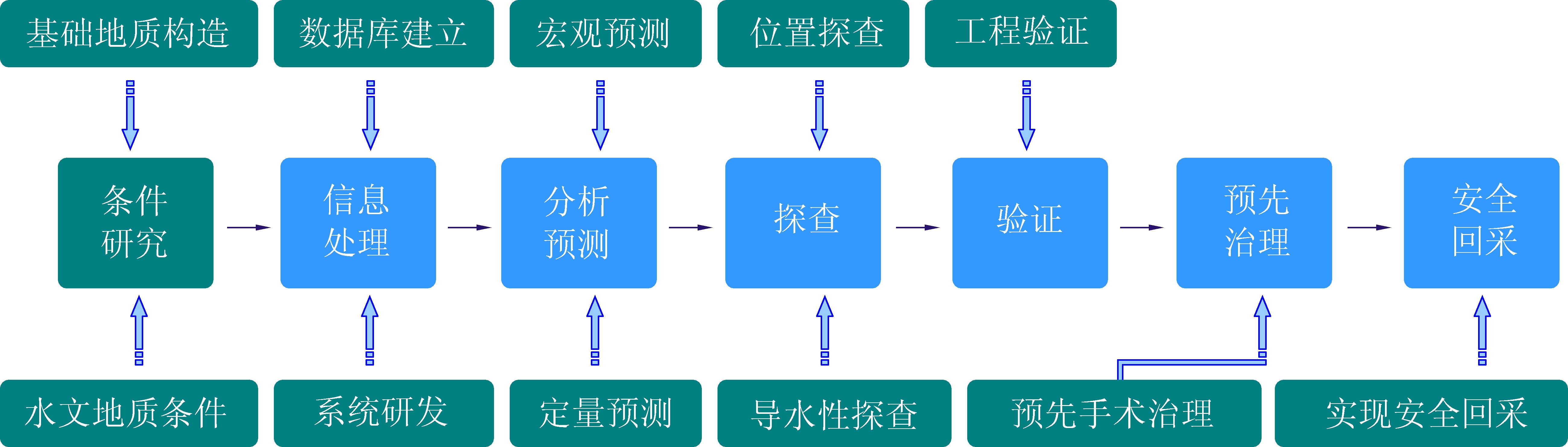以岩溶陷落柱基本理论体系为基础,华北型煤田隐伏含水陷落柱预探评价与快速治理理论及关键技术,获2011年度国家科技进步二等奖,标志着其治理理论及技术也进入新阶段。借助定向钻进技术在奥灰水防治中迅速广泛的推广应用,区域探查治理技术[35]得到迅速发展,陷落柱的超前探查治理及灾后封堵也受益匪浅,从技术水平到经济效益都达到了前所未有的高度。