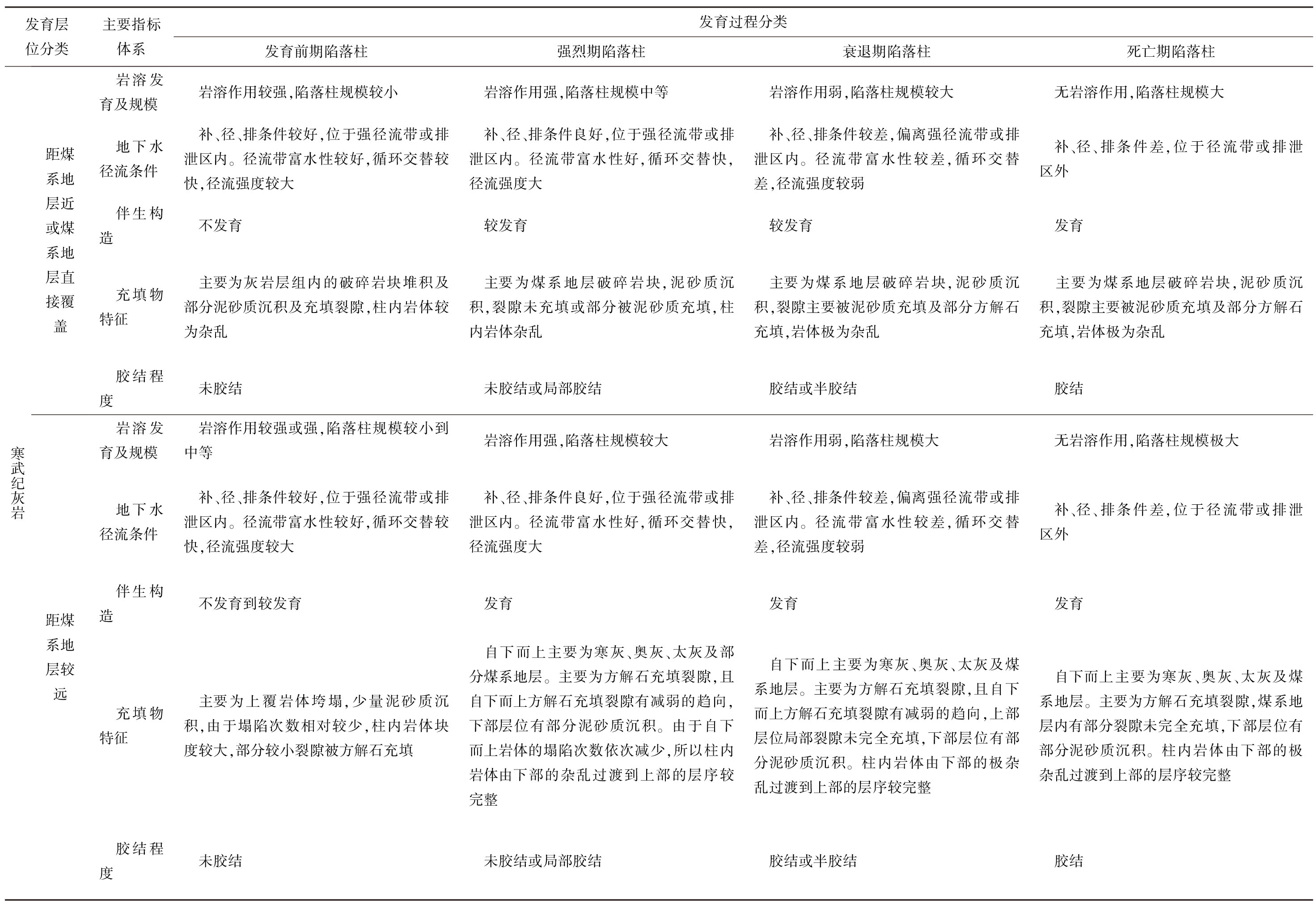 表6 岩溶陷落柱的分类及其特征一览