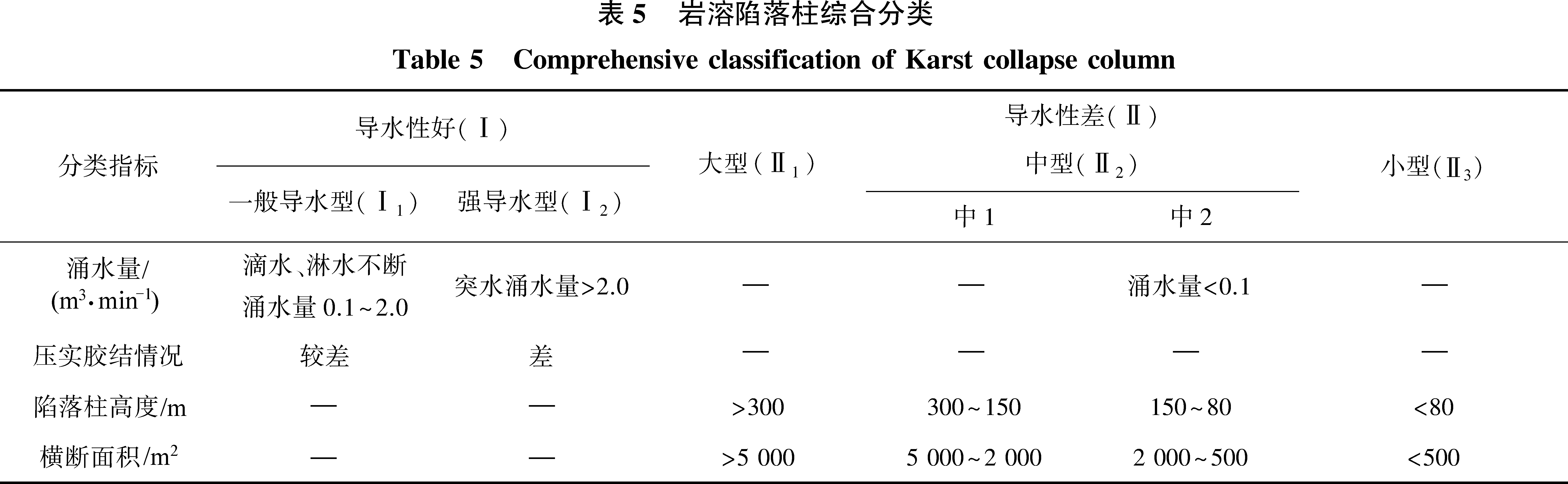 Table 6 Classification of Karst collapse columns and their characteristics
