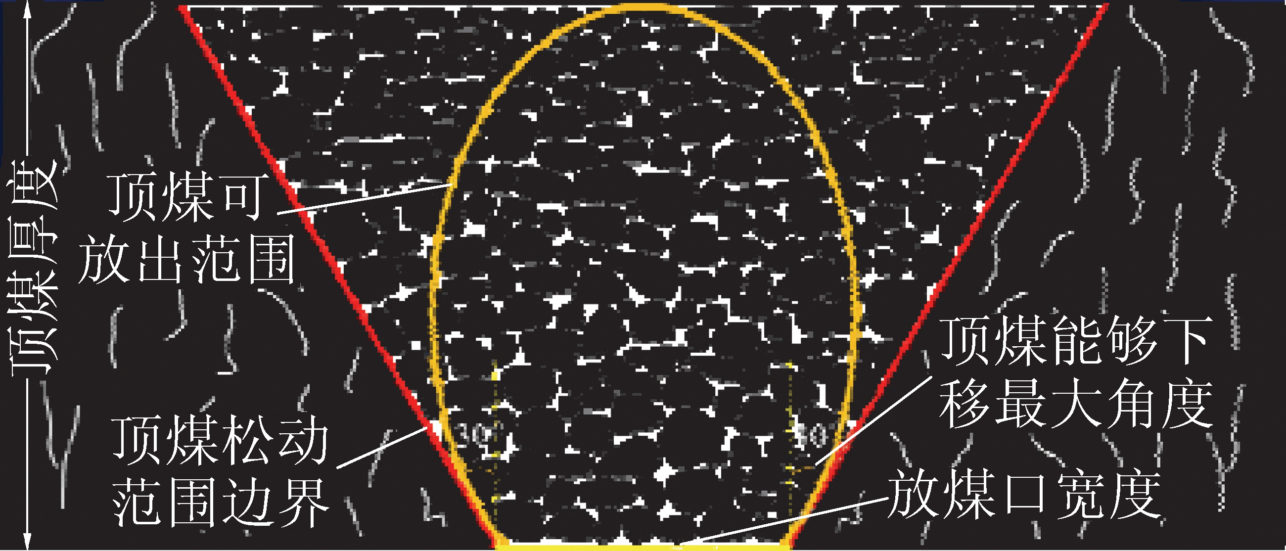 厚及特厚煤层资源产量与可采储量均占我国煤炭总产量与可采储量的45%以上[1],但现场实测统计数据表明,厚及特厚煤层综放工作面采出率较低,一般在82%左右,并且提高顶煤采出率一直是存在的技术难题之一[2-4]。自综采放顶煤开采技术引进国门至今,众多学者已在放出体发育形态、顶煤运移轨迹、煤矸分界面演化特征等方面取得显著成果[5-7]。吴健[8]从理论角度分析了顶煤散体运动规律、放煤椭球体形成过程,得出煤矸分界面是一个有一定厚度的混矸层,其受扰动次数及程度影响较大;黄炳香等[9]模拟了不同放煤口参数、采放比、放煤工序和步距的煤矸流场特征,得出采放比增加使顶煤层位线和中上部煤矸分界线的斜率增大,煤矸流动速度加快;放煤步距增加使移架后煤矸分界面与顶煤始动线前移间隔加大,整体斜率减小;张宁波等[10-11]用PFC2D模拟分析不同顶煤厚度对煤矸流场特征和顶煤放出规律的影响,得出顶煤损失是随放煤循环逐渐积累的,煤矸流动的速度场和接触力场以放煤口为中心呈半拱形状;文献[12-15]数值模拟了初次放煤、移架、放煤和不同机采高度的顶煤运移放出规律,得出工作面初始放煤漏斗呈对称状,前后煤矸分界面类似于二次曲线且可用横向抛物线加以描述,由于放煤支架的影响,放煤漏斗在沉降的同时向采空区侧偏移;文献[16-18]研究了破碎顶板条件下不同采高的顶煤冒放特征,结果显示顶煤从始动点至放煤口,水平位移和垂直位移不断增大,在支架上方以缓慢的水平位移为主,在支架尾梁附近以增速极快的垂直位移为主,且加大采高有利于顶煤放出;文献[19-20]分析了不同顶煤、直接顶厚度下,顶煤放出的冒落形态、应力分布情况,得出散体顶煤与冒落矸石分界线明显且有序向放煤口流动并行成一束束位移轨迹曲线;王家臣等[21]通过放煤试验和煤矸分界面力学模型分析,从理论层面解释了煤矸分界面形态的成因和控制煤矸分界面形态的方法。