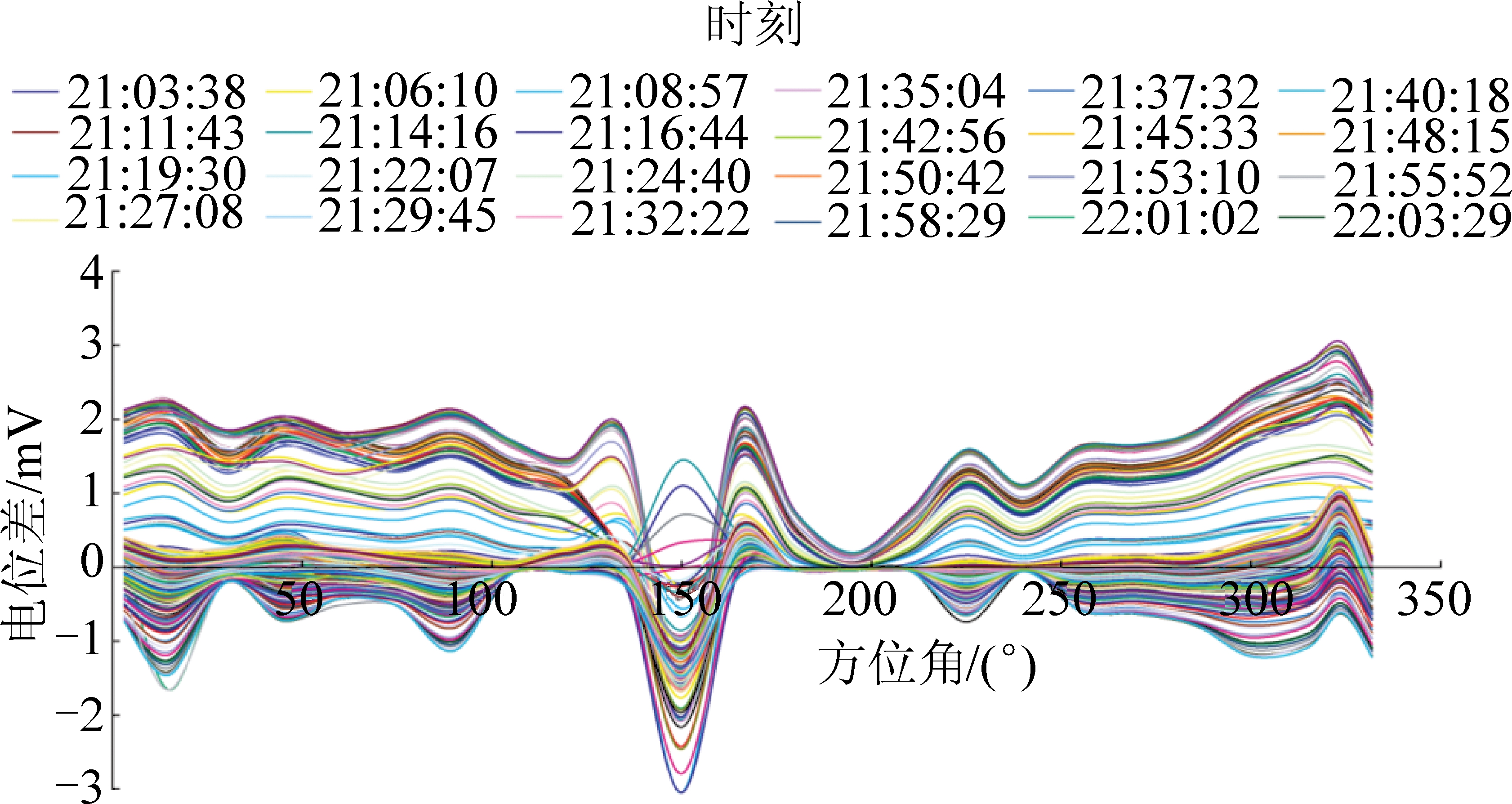 监测曲线和压裂监测曲线相反,也是主要在150°方向上排液,其他区域方向排液也与压裂时方向基本一致,测试曲线如图5所示。