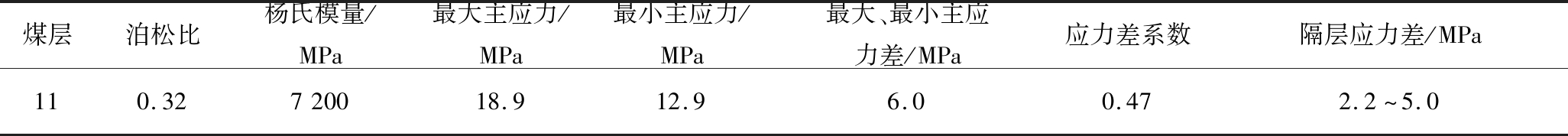 煤层泊松比杨氏模量/MPa最大主应力/MPa最小主应力/MPa最大、最小主应力差/MPa应力差系数隔层应力差/MPa30.35634214.411.72.70.232.8~2.240.29722314.611.72.90.252.2~2.380.35557016.212.73.50.280.7~2.690.35559216.413.13.10.242.5~3.4