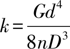 2)弹簧刚度k及有效圈数n计算公式分别为