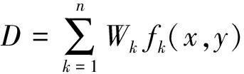 式中:D为突出危险性指数;Wk为影响因素的权重值;fk为单因素得分函数,x,y为坐标;n为影响因素的个数。