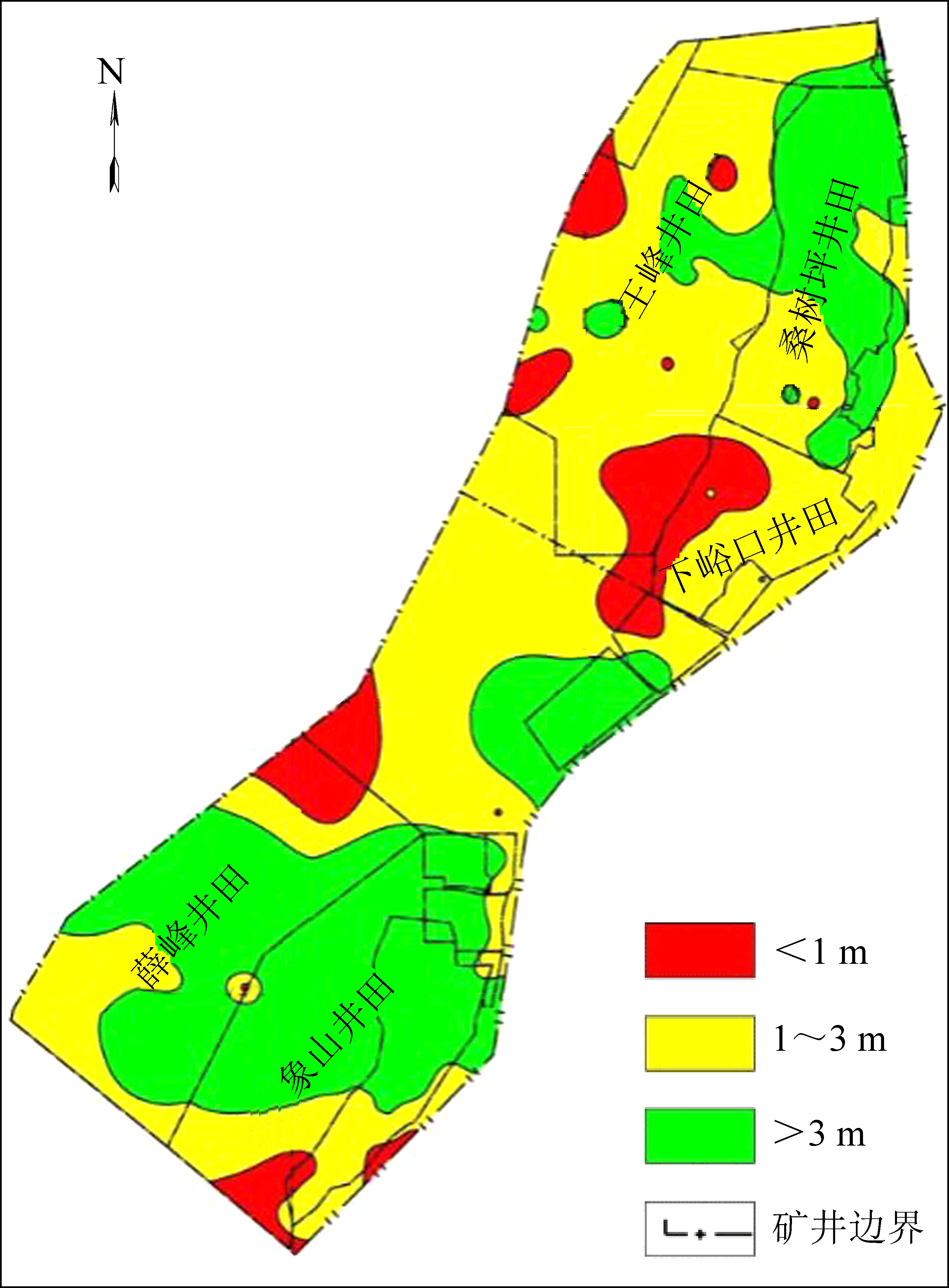 图1 韩城矿区3煤厚度分区