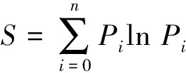 式中:S为系统的熵;Pi为系统中i状态出现的概率;n为系统中状态数。