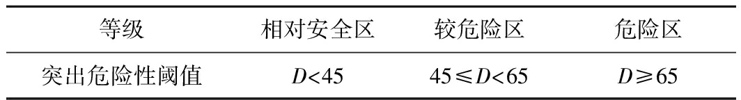 等级相对安全区较危险区危险区突出危险性阈值D<4545≤D<65D≥65