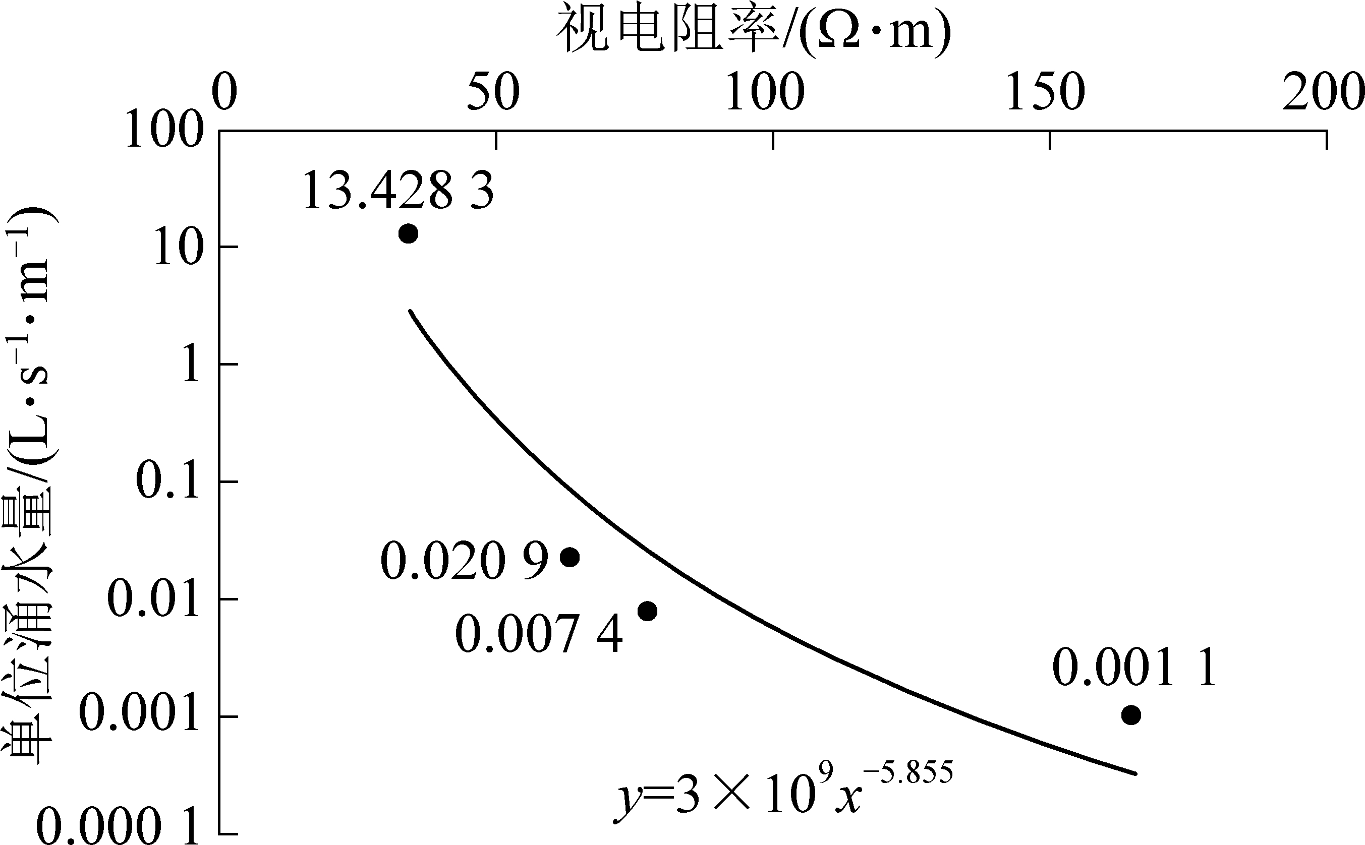 式中:y为单位涌水量;x为视电阻率。