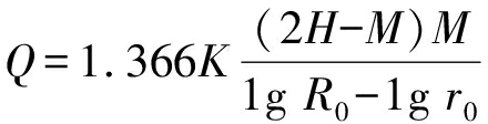 式中:H为水柱高度,m;K为渗透系数;R为影响半径,m;R0为“大井”影响半径,m;M为导水裂缝带导通的含水层厚度,m。