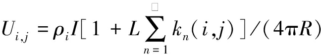 式中:Ui,j为位于i点的发射点源在j位置的电位,μV;ρi为发射点位置的电阻率,Ω·m;kn(i,j)=F(L,d,θ,ρ)为反射系数函数。