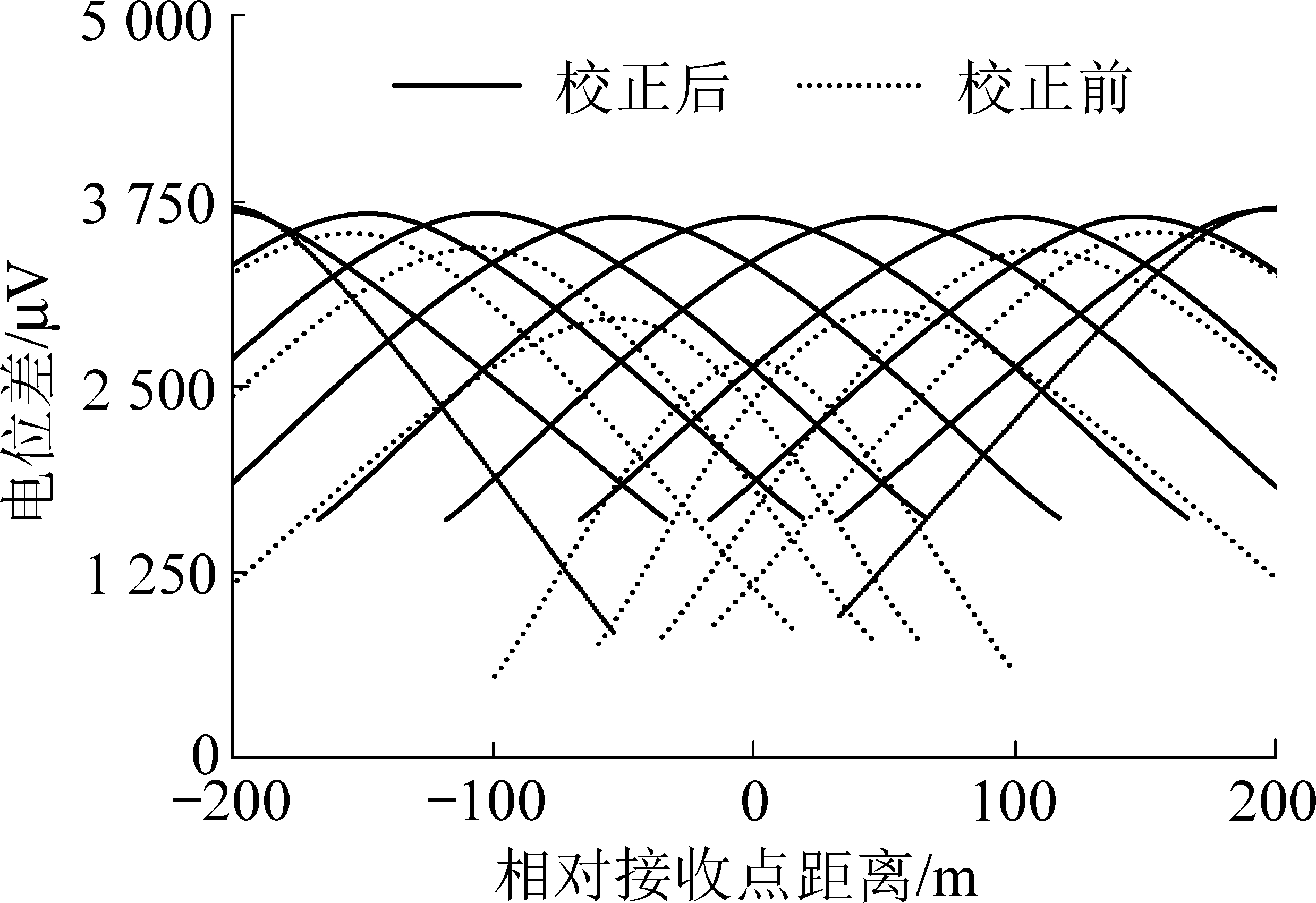 重复上述步骤,直到不同接收点曲线在同一发射点附近均没有出现畸变点,绘制处理后的接收曲线,完成音频电透视数据接收端一致性校正。