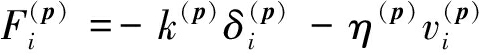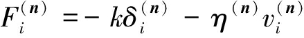 为岩块i的角加速度,rad/s2;vi为岩块i的线速度,m/s;ωi为岩块i的角速度,rad/s;m为岩块质量,kg;t为时间变量,s;Δt为时间变化量,s;I为岩块转动惯量,kg·m2;M为岩块的力矩,N·m;n为单位法向量;p为单位切向量;δ为岩块变形量,m;η为阻尼系数,N·s/m;k为弹性系数,N/m;F为岩块间接触力,N;R为岩块的半径,m。