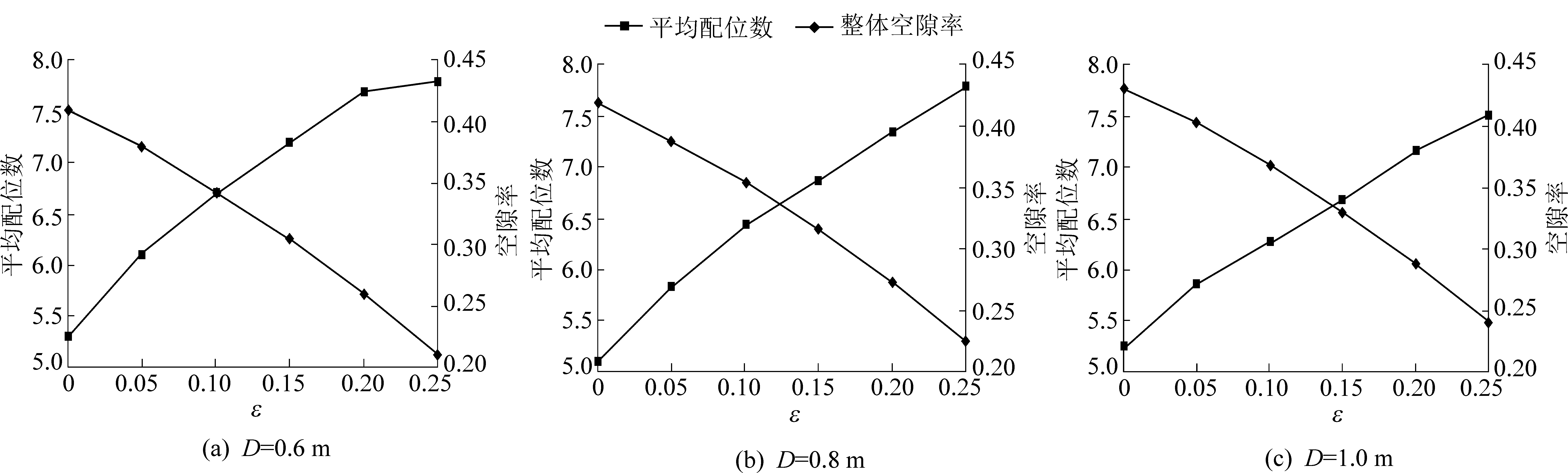 基于离散单元法,采用Hertz-Mindlin接触模型,运用自编程序,模拟垮落岩体在轴向应变为0、0.05、0.10、0.15、0.20和0.25下的压实过程,分析了不同压实程度下,垮落岩体内应力自上向下传递过程中配位数的分布及演化特征,研究了岩体内不同层位空隙的分布。
