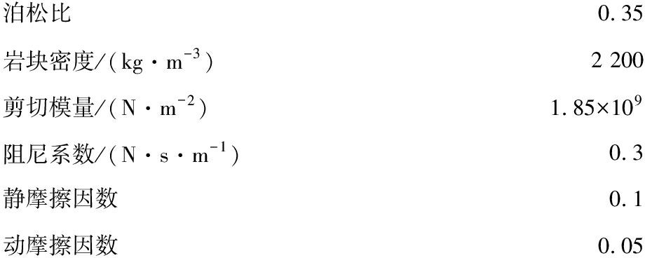 泊松比0.35岩块密度/(kg·m-3)2 200剪切模量/(N·m-2)1.85×109阻尼系数/(N·s·m-1)0.3静摩擦因数0.1动摩擦因数0.05