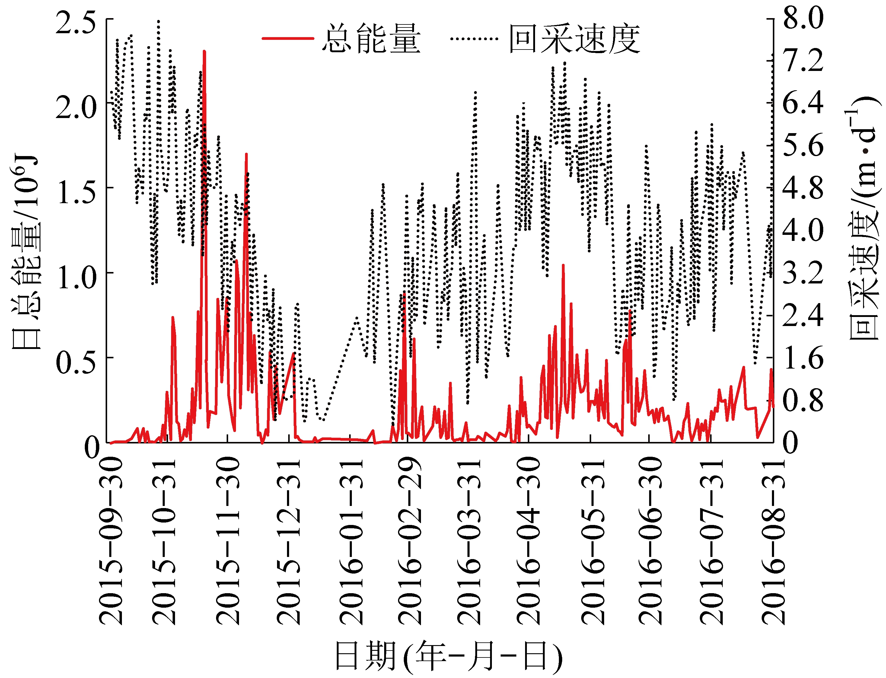随着回采速度的增加,日平均总能量近似线性增长,大能量矿震的平均日频次近似线性增长,说明回采速度越快,采场围岩释放的弹性能越多;且回采速度的增加使矿震能量层次分布发生变化,使采场围岩释放的弹性能能级增大,促使低能量矿震向高能量矿震跃进,最终造成大能量矿震占比增加,不利于采场围岩的冲击危险性防控,侧面证实了数值模拟结果的正确性。