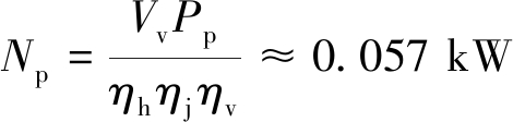 式中:Vv为防爆水泵的泵水量;Pb为防爆水泵的泵水压力,由厂家提供,取0.1×106 Pa;ηh为防爆水泵的液力效率,由厂家提供,取0.6~0.7;根据防爆水泵型号和结构取0.7;ηj为防爆水泵的机械效率,由厂家提供,取0.9~0.95,根据防爆水泵型号和结构取0.9;ηv为防爆水泵的容积效率,由厂家提供,取0.6~0.8,根据防爆水泵型号和结构取0.7。