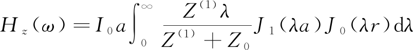式中:I0为发射电流;a为回线边长;Z0为首层阻抗;Z(1)为阻抗迭代计算的表达式;λ为积分变量;r为发射回线中心点与接收线框中心点之间的距离;J1(λa)为第一类一阶贝塞尔函数,与a有关,其零阶贝塞尔函数J0(λr)与r有关,中心回线装置中默认r=0,从而对计算过程简化,实际探测中,探测范围往往是回线内的部分面积,并非严格的中心点,此项不应忽略。