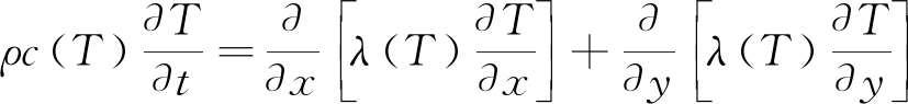 取心管温度分布T(x,y,t)满足如下二维非稳态导热控制方程[21]: