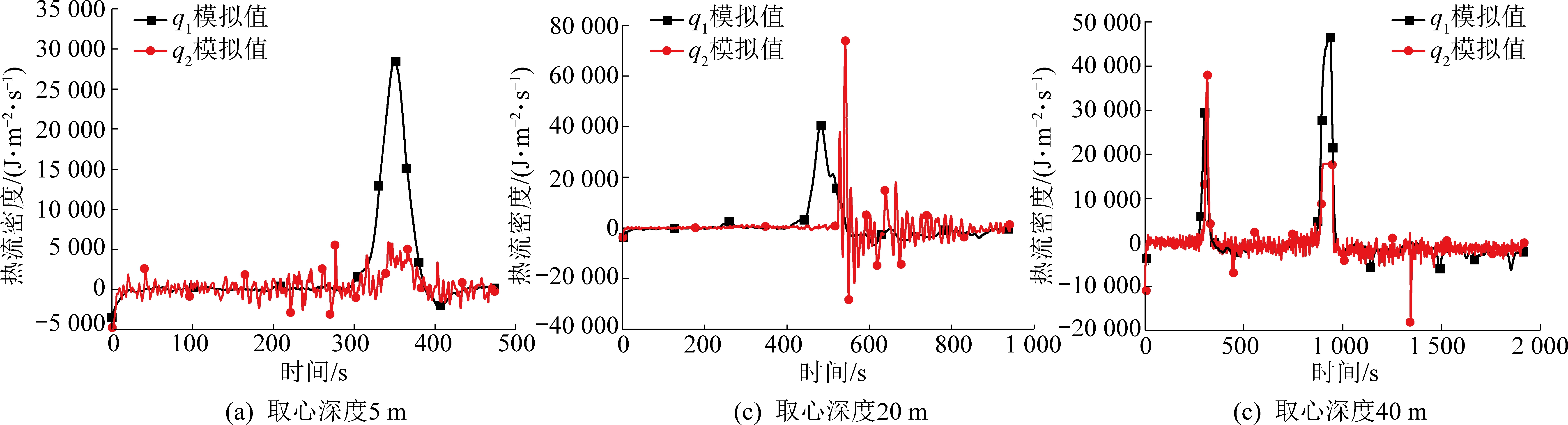 Fig.6 Inversion results of density of heat flow rate on the surface of coring tube at different coring depths