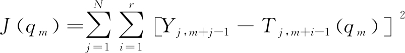 式中:Yj,m+i-1和Tj,m+i-1(qm)分别为测点j在tm+i-1时刻的温度测量值和计算值。