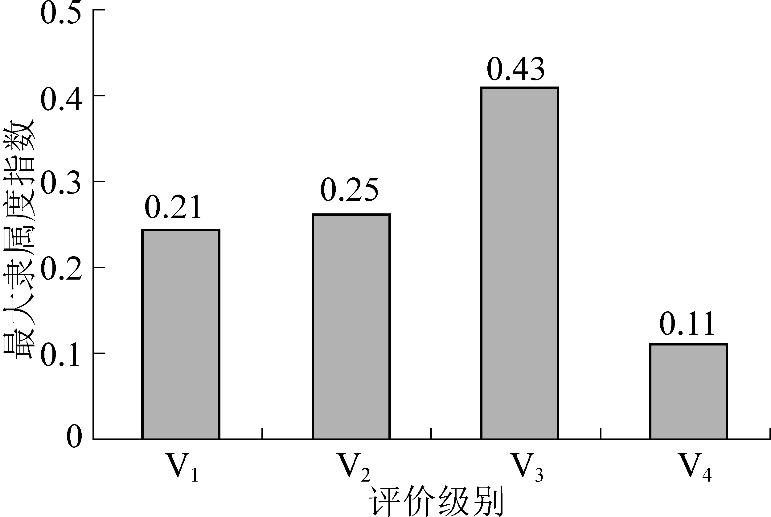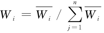 在构建模糊综合评价模型时,为了与实际情况相吻合,多采用层次分析法[22-24]。实际上就是把现有评价标准和真实测量值,通过模糊综合计算,综合评价。在进行模糊综合评价时应当同时满足下面3个条件:①评价因素集U={U1,U2,U3,…,Un};②评价集V={V1,V2,V3,…,Vn};③各评价因素集U到V的一个模糊映射f:U→V,即选择任意单因素u∈U,都有模糊综合评价集B(u)∈f(V)一一映射得到模糊综合矩阵R,R=(rij)nm(i=1,2,…,n;j=1,2,…,m),称(U,V,R)为综合评价数学模型[24]。