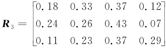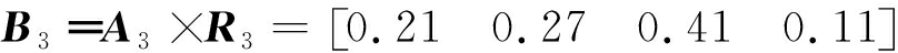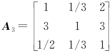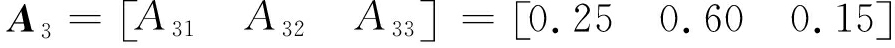 由式(6)、式(7)得CR=0.04<0.1,经判断矩阵的一致性检验可知,A3具有满意的一致性。