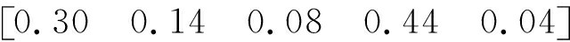 经式(2)—式(5)计算,λmax=5.26,评价因素的权重为