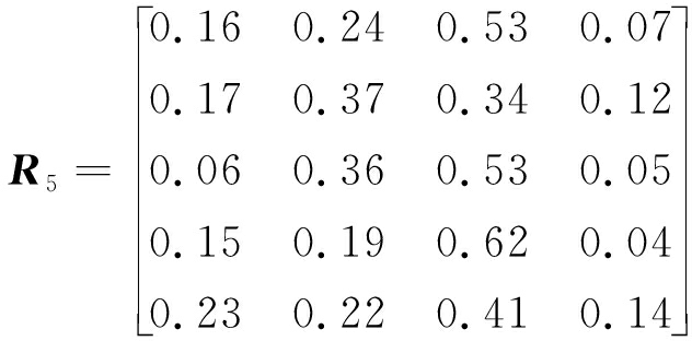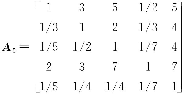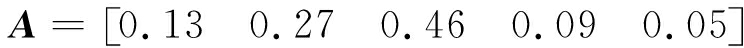 由式(6)、式(7)得CR=0.06<0.1,经判断矩阵的一致性检验可知,A5具有满意的一致性。