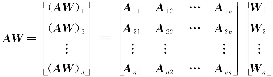 3)由式(6)、式(7)得CR=0.05<0.1,经判断矩阵的一致性检验可知,A具有满意的一致性。