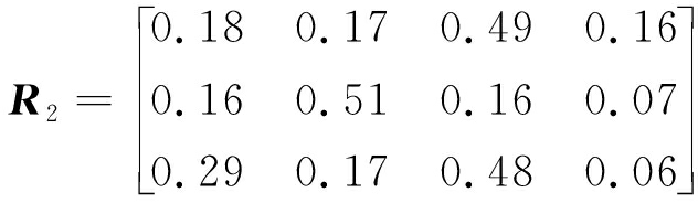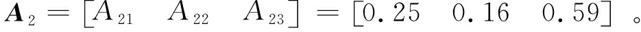由式(6)、式(7)得CR=0.04<0.1,经判断矩阵的一致性检验可知,A2具有满意的一致性。
