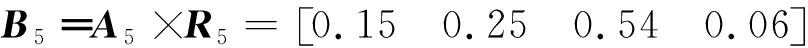 将得到的B1、B2、B3、B4、B5作为上一层评价矩阵R,并作模糊变换。