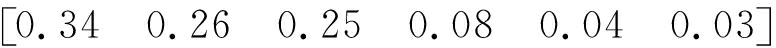 经式(2)—式(5)计算,λmax=6.52,评价因素的权重为